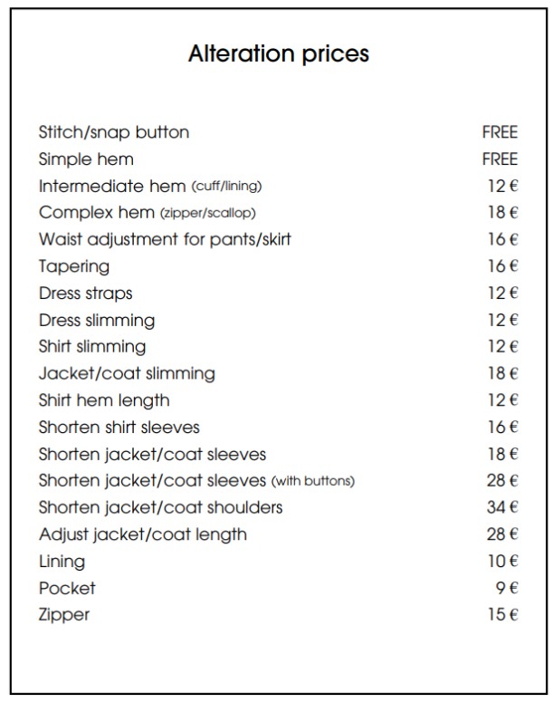2. Alteration Prices